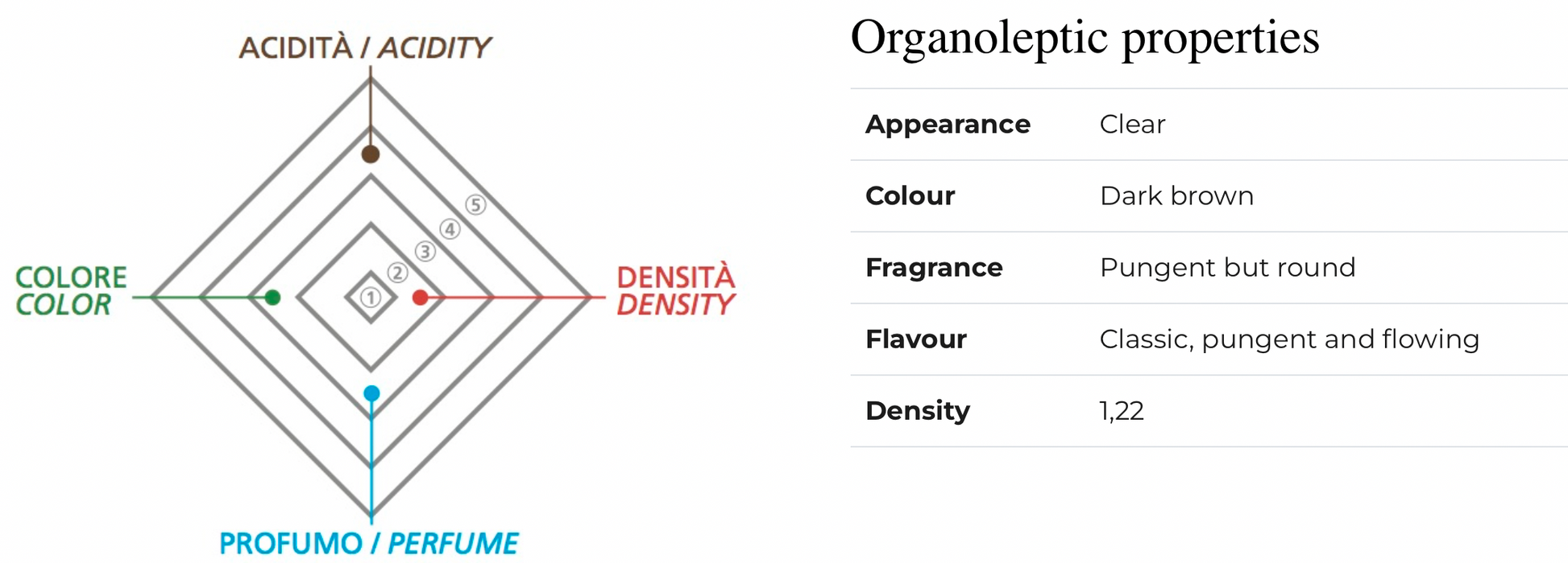 Uses: a versatile product to use daily on row, cooked or fried vegetables, salads, omelets, roasted meat, risotto, Buffalo Caprese, strawberries and fruit salads.